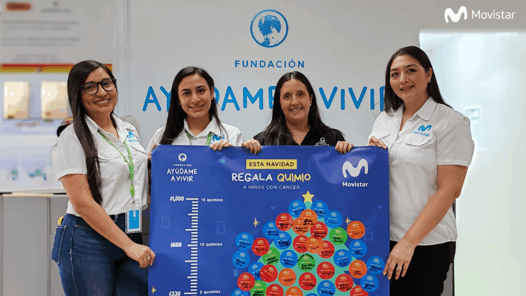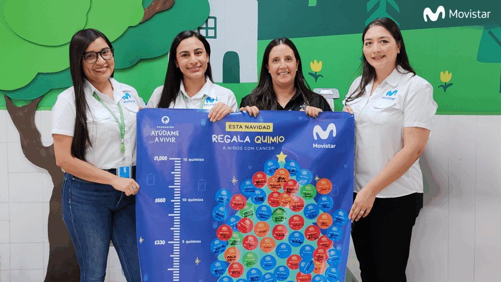Como parte de su compromiso con la sostenibilidad y su propósito de conectar a las personas con la red más humana, durante esta temporada navideña, Movistar El Salvador se unió a la Fundación Ayúdame a Vivir (FAV), organización que brinda, sin ningún costo, tratamiento médico y apoyo integral a todos los niños y niñas con cáncer en El Salvador, en su campaña “Esta navidad regala una quimio a niños con cáncer”. Esta acción buscó inspirar y movilizar a sus colaboradores en torno a causas que reflejan los valores más humanos y solidarios de la compañía.