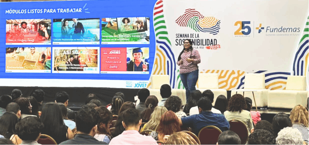 En la primera jornada de la edición 2025 de la Semana de la Sostenibilidad y la RSE, Nestlé participó en el espacio: Sinergias de Talento e Innovación, donde frente a un público mayoritariamente joven, se presentó la ponencia: Semillero de Talento de Nestlé El Salvador: un ejemplo real de empleabilidad juvenil efectiva.